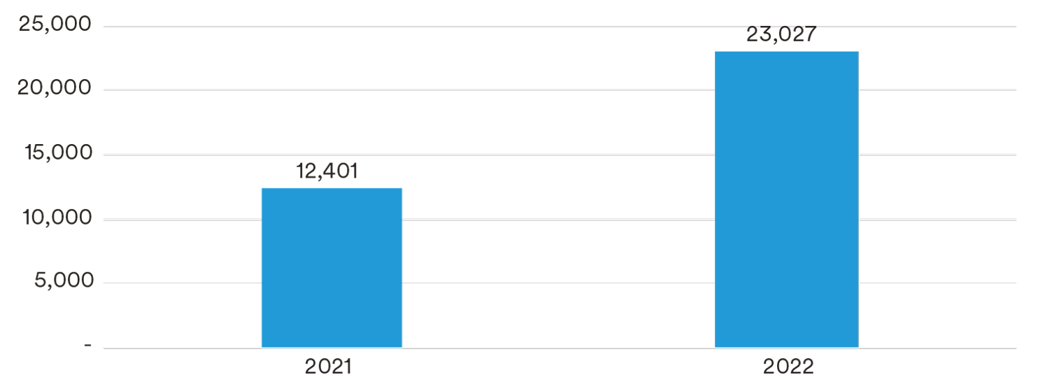 Data as of March 25, 2021 and 2022, respectively. Number of individual incentives for energy efficiency, each of which may be utilized by multiple properties (up to 1000+). Source Incentifined