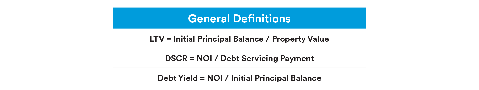 In contrast to LTV and DSCR, debt yield measures the available net operating income of a property relative to the size of the first-lien debt and implies what yield a debt holder might expect in the case of a foreclosure and assumption of property ownership.