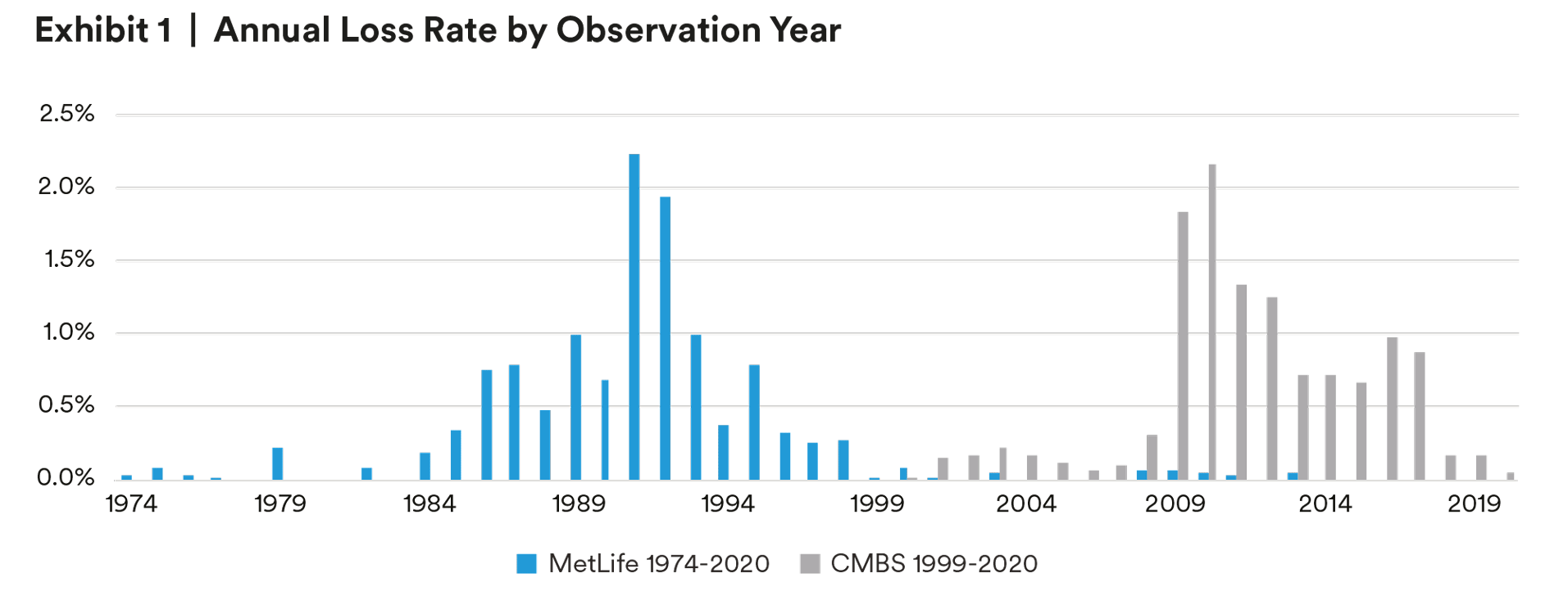 7 Exhibits 3 and 4 are based on the combined losses from the 1974-2021 MIM series and 1998-2020 CMBS series. Losses are depicted as an average annual rate.