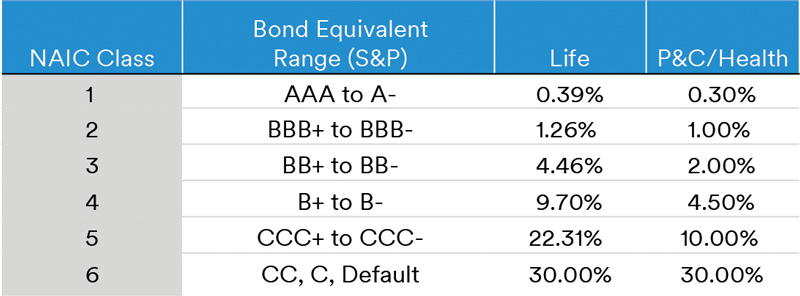 Capital factors are for insurers’ unaffiliated bond holdings and are pre-tax and pre-covariance (which varies by company). Source: NAIC