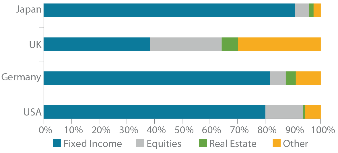 Note: Fixed Income includes Corporate, Gov-related, Mortgages, Structured Credit & other fixed income. Other includes Alternative Investments and, in the UK, Unit Trusts.