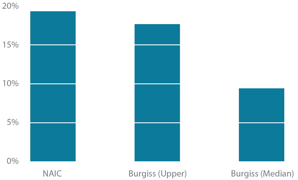 FIGURE 3 | IRR OF NAIC PRIVATE EQUITY INDEX VS BURGISS BENCHMARK