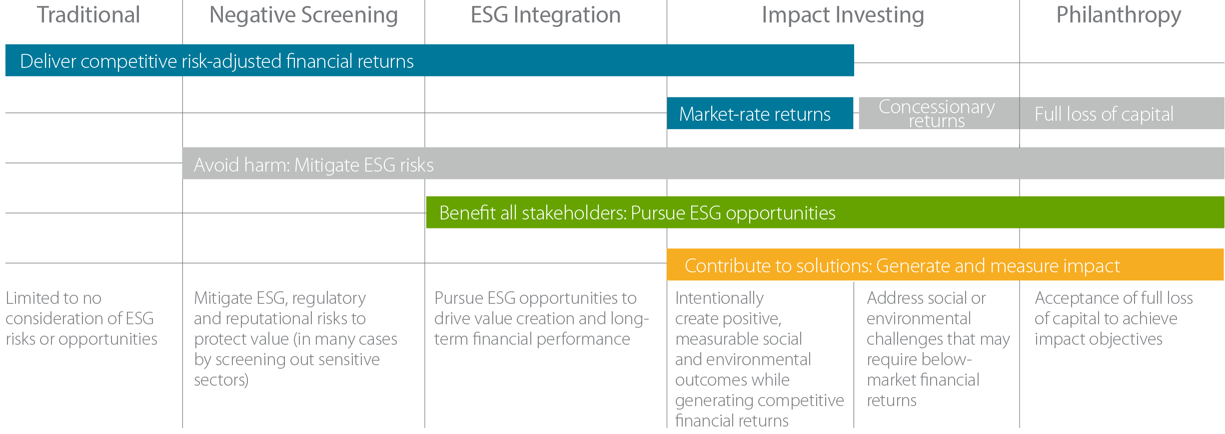 Groups like the PRI have shifted that discussion from divestment to engagement, from negative screening to proactive ESG-related value creation. As ESG integration has become the rule, investors are looking for opportunities to generate targeted social and environmental outcomes, with a view toward having more intentional impact with their investment dollars.