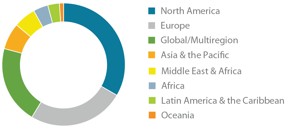 The private impact investing universe has grown larger and more sophisticated over the last decade, eclipsing $500 billion in AUM by some estimates.11 The space has also expanded geographically. Since taking root in the emerging markets, more than half of the impact AUM now targets developed markets (Figure 6). Moreover, two-thirds of investors are seeking investments that target the same risk-adjusted returns they would expect from a comparable investment in the same asset class.12FIGURE 6 | REGIONAL FOCUS OF IMPACT FUNDS