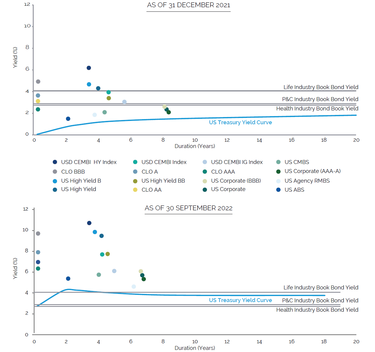 In this new regime of high inflation and volatility, we think there’s a more thoughtful way to approach fixed income allocations in insurance portfolios. In our view, removing some of the traditional guardrails, such as narrow guidelines and benchmark constraints, can provide insurers with more tools to help manage duration and quality exposure through the credit cycle. We believe this broader, more flexible approach can open up the return potential of an insurance portfolio without significantly adding to its risk profile.