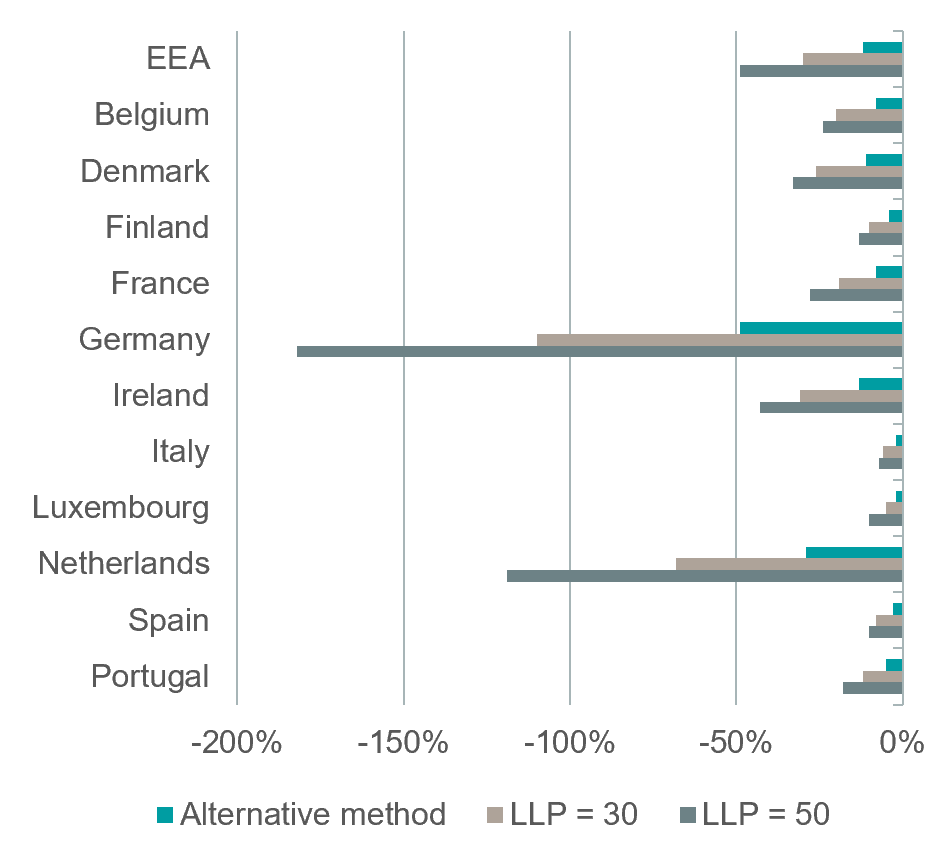 Figure 3. Impact of Different extrapolation Methods on the Average SCR ratio by Country