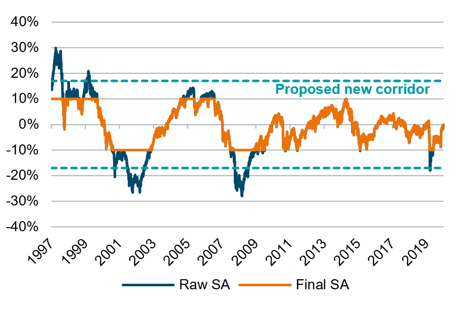 Figure 5. Development of the Symmetric adjustment (SA), 31/12/1997 – 31/12/2020