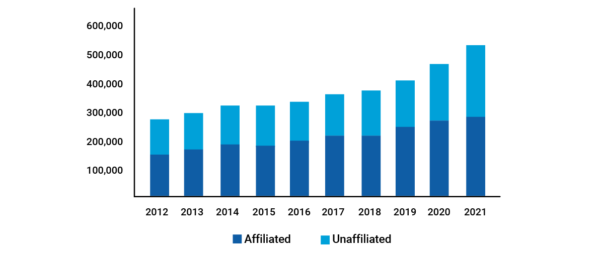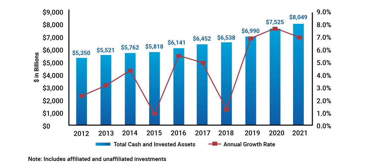 Chart 1: Historican U.S. Insurance Industry Total Cash and Invested Assets, Year-End 2012-2021