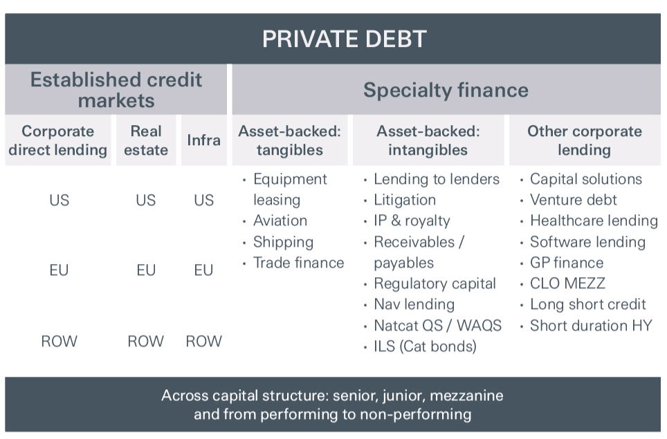 Figure 1 | The private debt landscape extends over a broad range of strategies, collateral, types, regions and level of seniority