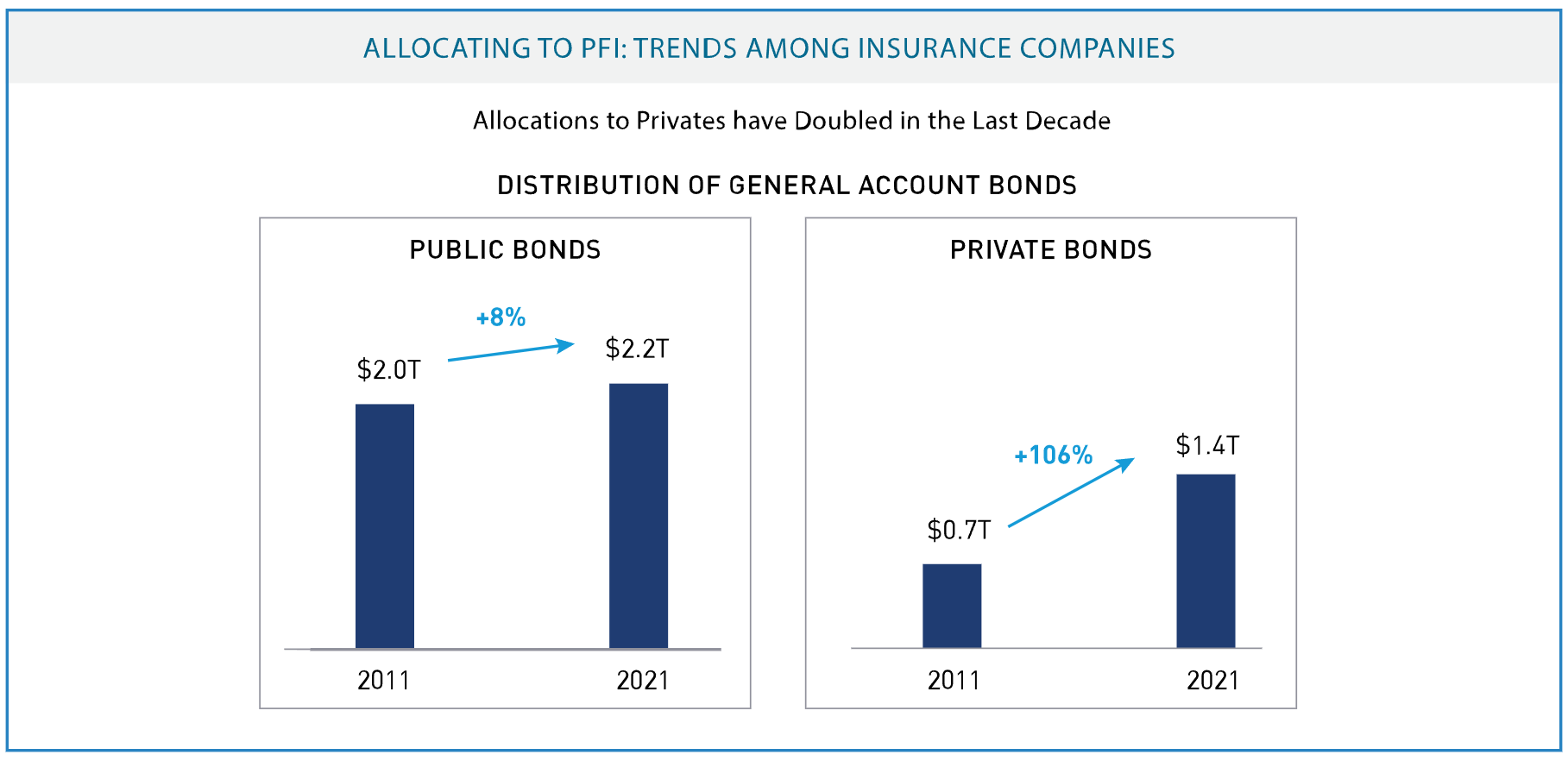 Sources: Private Placement Monitor, BofA Securities. Data as of 31 December 2021. This material is for informational purposes only and should not be construed as investment advice Information obtained from outside sources is believed to be correct, but Loomis Sayles cannot guarantee its accuracy. This material cannot be copied, reproduced or redistributed without authorization. Evolution of the Private Fixed Income Marketplace The evolution of PFI since the global financial crisis has been largely driven by the retreat of traditional commercial bank lenders, which, faced with increased regulation, have curtailed lending to certain market sectors. Non-traditional, private lenders filled the void, and the PFI opportunity set grew to include new sectors and new geographies beyond the US and Europe. Historically, the private placement space, consisted mostly of investment-grade corporate bonds; however, the past decade saw the emergence first of project finance and infrastructure opportunities and then private asset-backed transactions. In recent years, specialty finance transactions, which typically consist of secured, non-corporate consumer, commercial or esoteric lending, have come to the forefront, offering investors opportunities for additional yield potential and lower correlation versus more traditional private fixed income sectors. The growth and evolution of the PFI market continues to accelerate, driven by both supply and demand. On the demand side, insurers (historically, the main source of PFI funding) appear to have grown increasingly comfortable with the asset class and turned to it for enhanced yield and diversification potential. On the supply side, more (and increasingly diverse) issuers have sought private markets for reasons ranging from confidentiality to speed and certainty of execution, resulting in a growing variety of deal structures, covenants and collateral sources. We expect this trend will continue, particularly if non-insurance investors increase allocations to this asset class.
