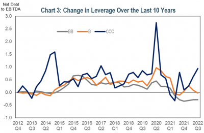 - Fundamentals will likely deteriorate, but from a strong starting point. The earnings environment is likely to weaken in light of a softer economy, with supply cost pressures weighing on margins, revenues lower, and employment costs higher. As a result, cash flows will likely be weaker, margins thinner, and leverage higher. The good news, however, is that corporate balance sheets are in better shape than they are typically when entering an economic downturn. Leverage remains below where it was prior to 2020 for many issuers which should give issuers some leeway from rating agencies.
