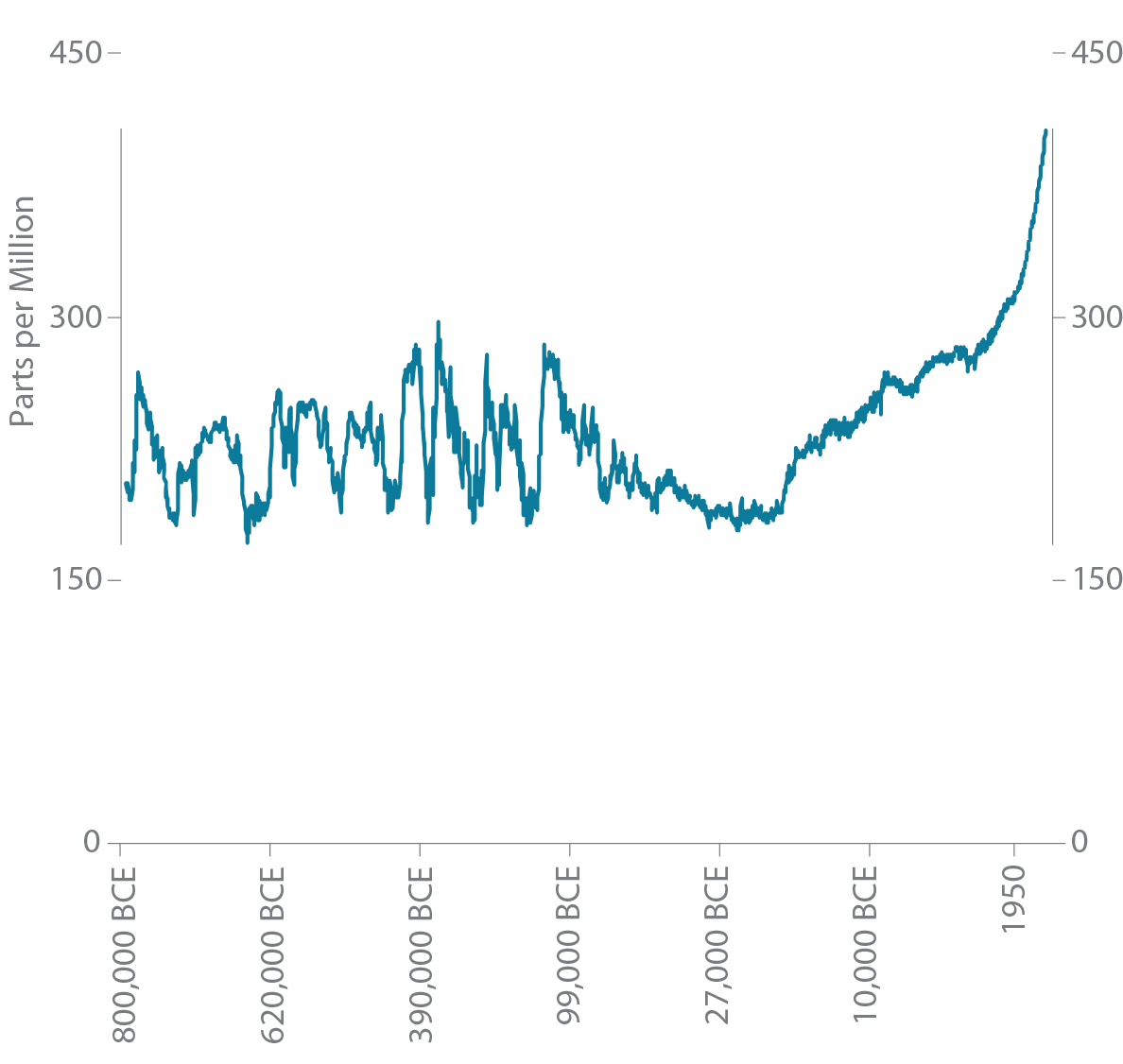 The earth’s climate is always changing. In the last 650,000 years, there have been seven ice ages. When the last one ended about 11,700 years ago, the modern climate era began. It only took a temperature increase of 4–7°C to melt the ice sheets and create the conditions that would allow human civilization to flourish.