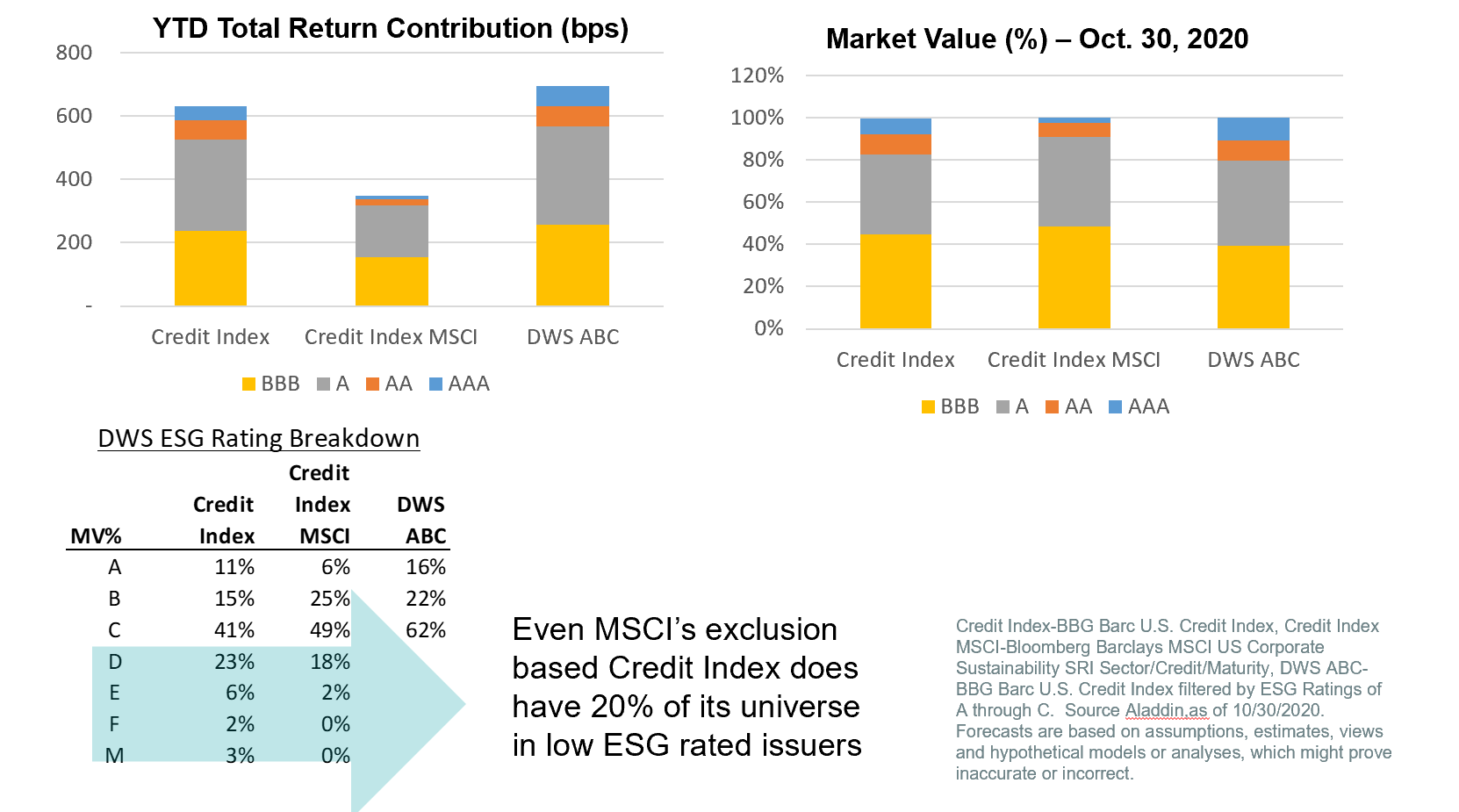 Our process is similar to our overall approach for the investment grade asset class. For DWS, ESG is not an afterthought, it’s incorporated into the process. For example, if we’re considering a higher-quality BBB name, we’ll include the grade assigned by our ESG group into our analysis because there may be more idiosyncratic risk related to those ESG considerations.