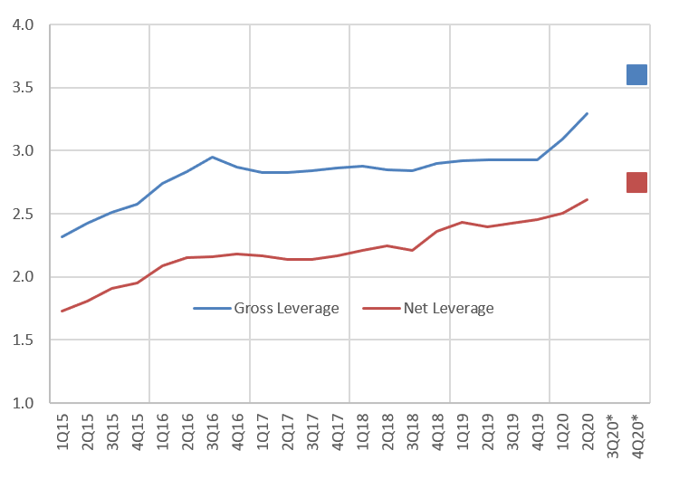 FIGURE 7: GROSS LEVERAGE IS EXPECTED TO KEEP RISING AS COMPANIES FORTIFY FINANCIAL FLEXIBILITY