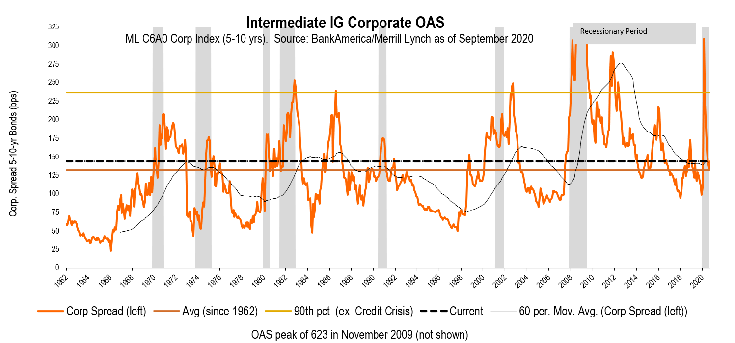 Source: ML C6A0 Corp Index (5-10 yrs). Source: Bank of America / Merrill Lynch. Past performance is not indicative of future results. Data as of September 30, 2020