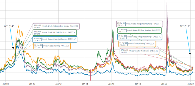 Using historical context, over the last 30 years, there have been only two instances where WTI prices breached $120/b: 1) Leading up to the 2008 financial crisis, where crude prices crashed from $145/b to $37/b in less than 6 months, and 2) the current geopolitical crisis. It is extremely hard to say how this episode will end, but in DWS’s view this volatility will drag on for a while and will likely get worse before it gets better.