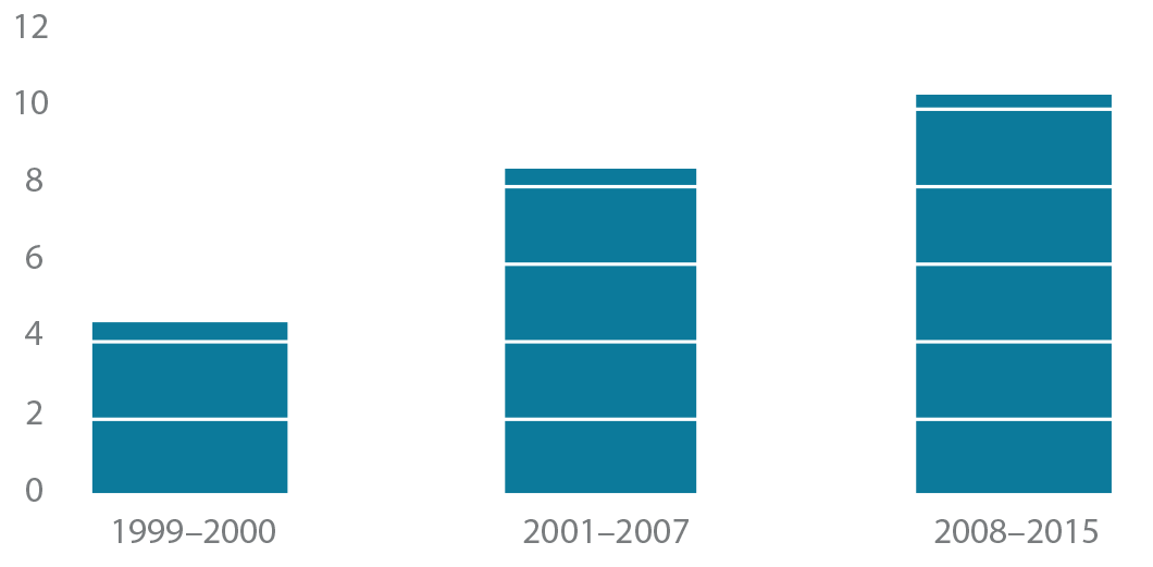 Although overall exit activity has improved in VC, the time to liquidity for technology companies has soared. Unlike in the late 1990s, the companies going public today are older and much larger (Figure 5). According to Jay Ritter of the University of Florida, the median revenue at IPO for tech companies in 2018 was US$167 million versus a mere US$17 million in 1999.